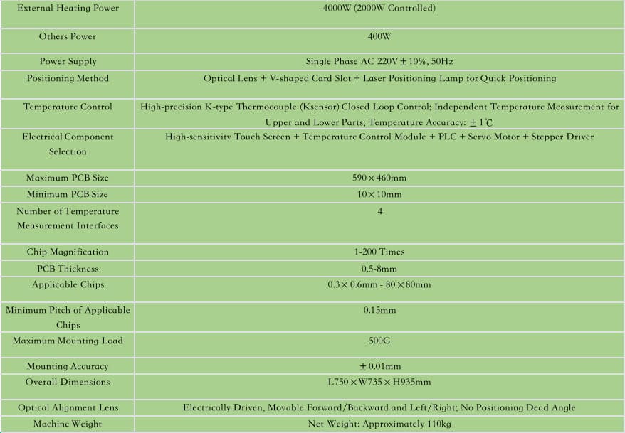 2. High-quality heating: imported carbon fiber heating wire (fast heating, temperature synchronization, anti-PCB deformation), German Schott microcrystalline glass (1200°C high temperature resistance);